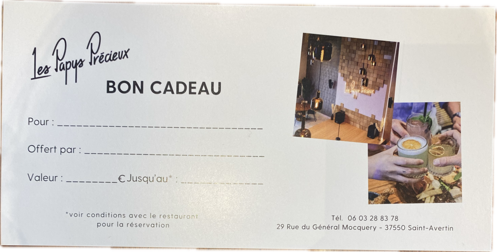 Envie de faire plaisir sans vous tromper ? Pensez au bon cadeau des Papys Précieux ! Disponible directement sur place, il permet de laisser le choix tout en offrant du style (et du sourire). C’est le cadeau parfait pour les indécis, les retardataires… ou les gens très organisés qui aiment assurer à tous les coups !