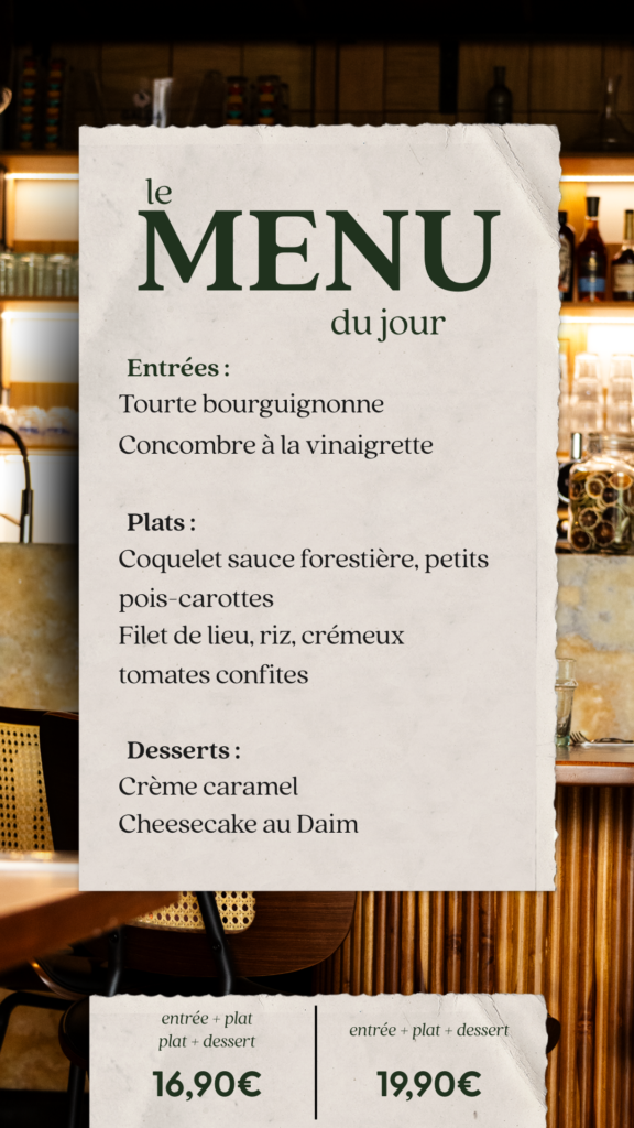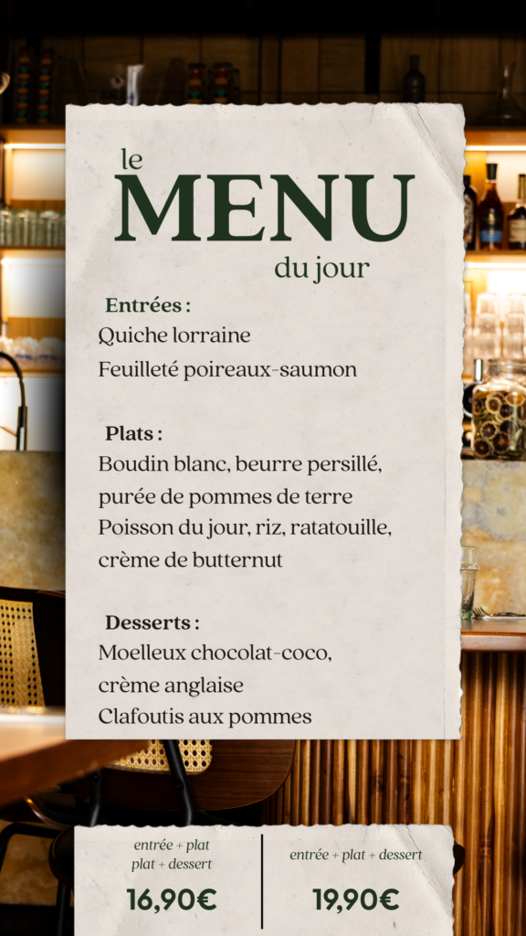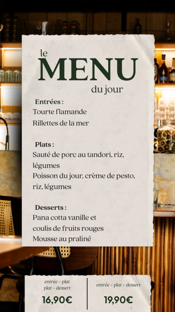Tous les midis un nouveau menu. Curieux ? On le poste tous les matins sur Instagram !